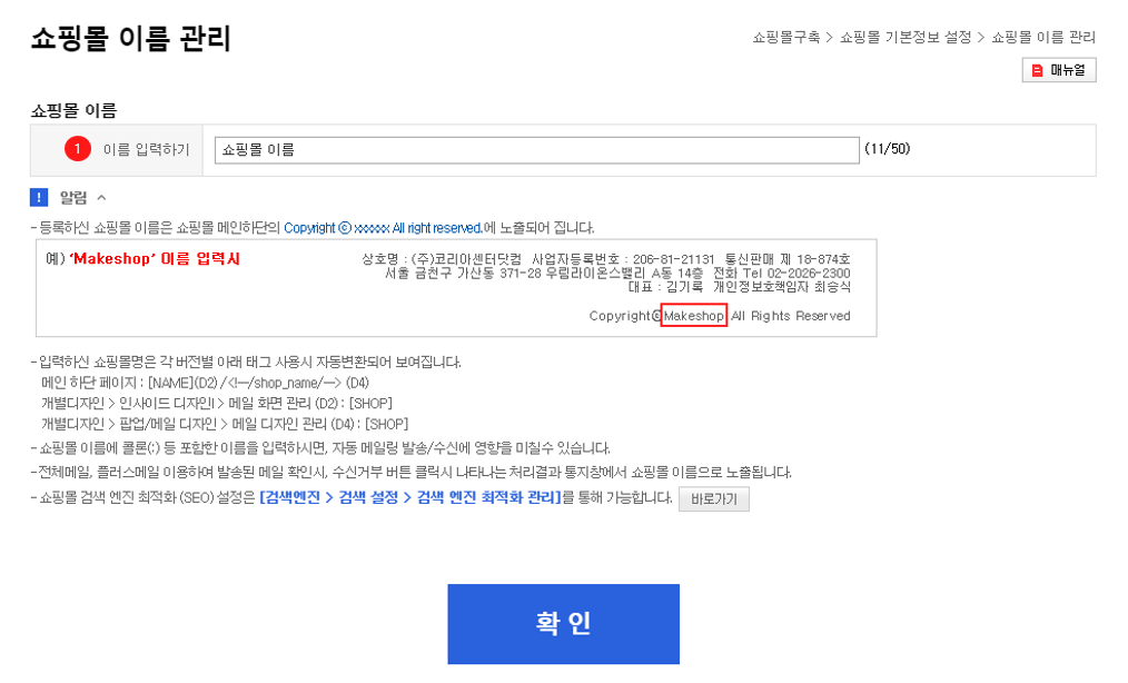 ¼îÇθô±¸Ãà > ¼îÇθô ±âº»Á¤º¸ ¼³Á¤ > ¼îÇθô À̸§ °ü¸®