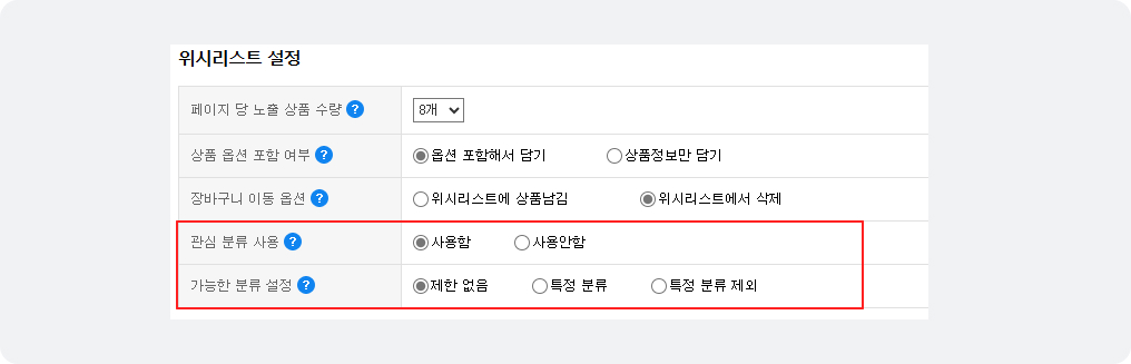 • »óǰ ºÐ·ù¿¡ ´ëÇØ wish(°ü½É) ±â´É »ç¿ëÀ¯¹«¸¦ ¼³Á¤ ÇÒ ¼ö ÀÖ¾î¿ä.