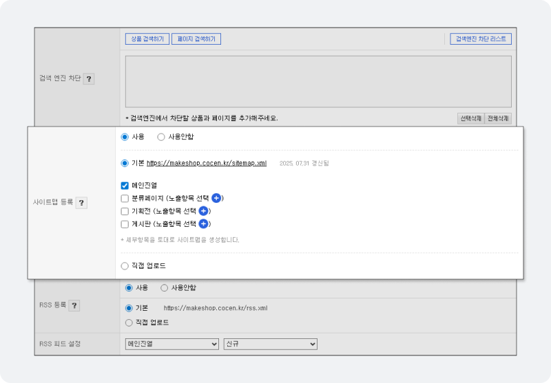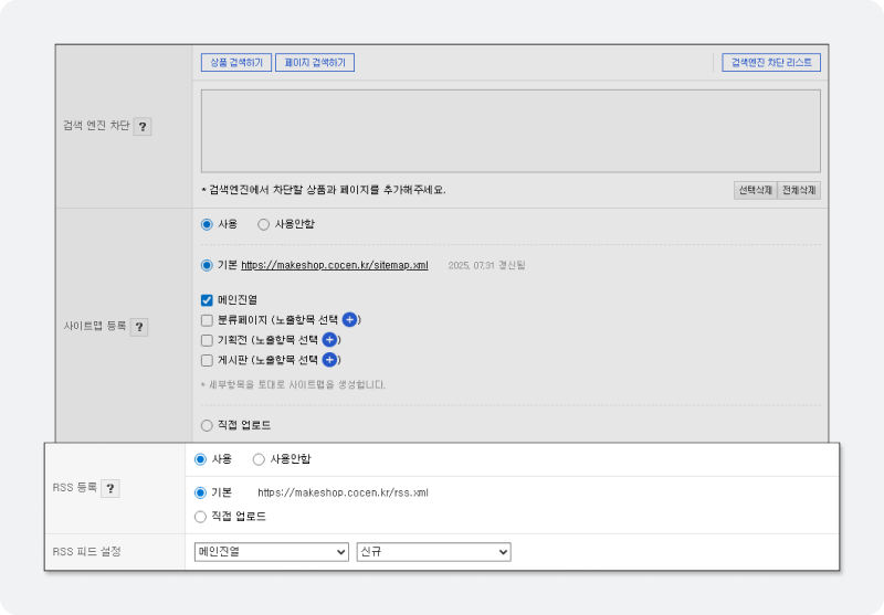 °Ë»ö¿£Áø ÃÖÀûÈ - »çÀÌÆ®¸Ê ¹× RSS ÇÇµå ¼³Á¤ ±â´É °³¼±
