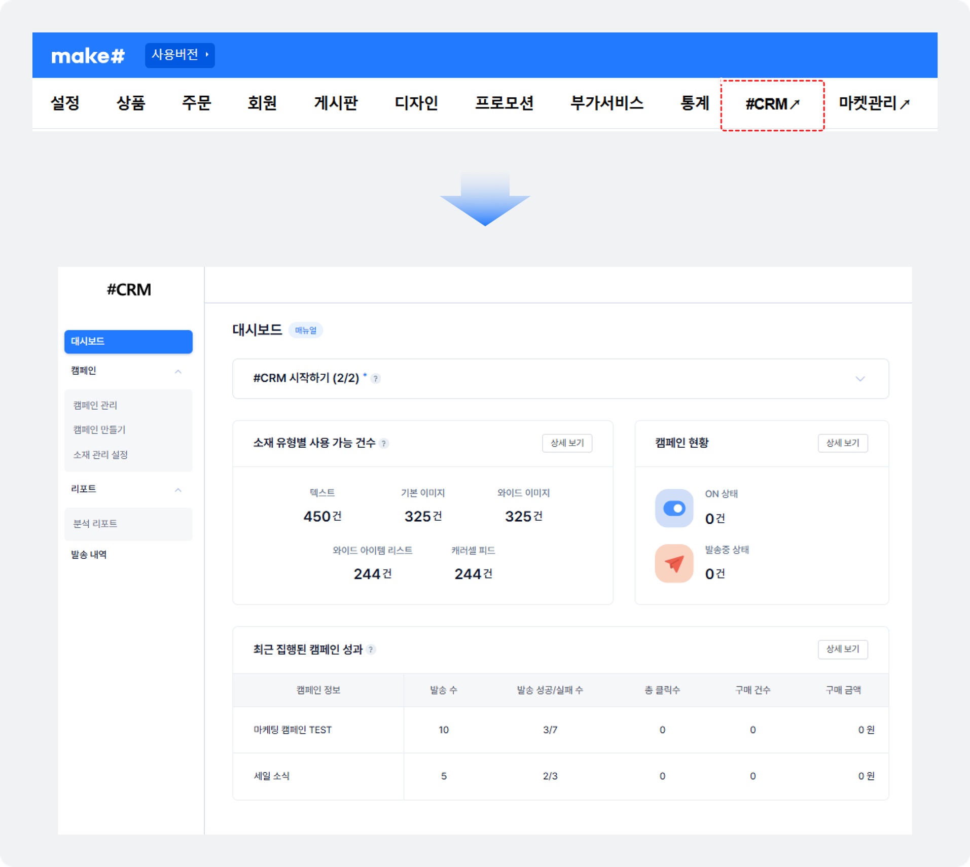 • #CRM ¸Þ´º¸¦ ÅëÇØ crm ÆäÀÌÁö·Î À̵¿ÇÏ¿© ±â´ÉÀ» ÀÌ¿ëÇØº¸¼¼¿ä.