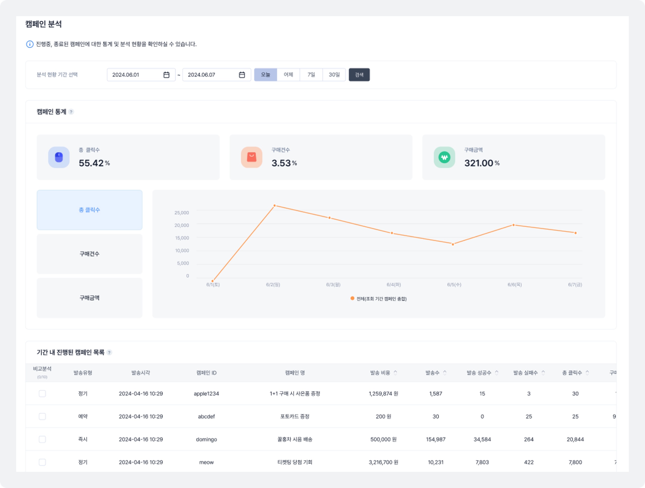 • ¹ß¼ÛÇÑ Ä·ÆäÀÎ(±¤°í ¸Þ½ÃÁö)¿¡ ´ëÇÑ ¼º°ú¸¦ ºÐ¼®ÇÏ¿© ¸¶ÄÉÆÃ ¼º°ú¸¦ ÇÑ ´«¿¡ º¼ ¼ö ÀÖ¾î¿ä.